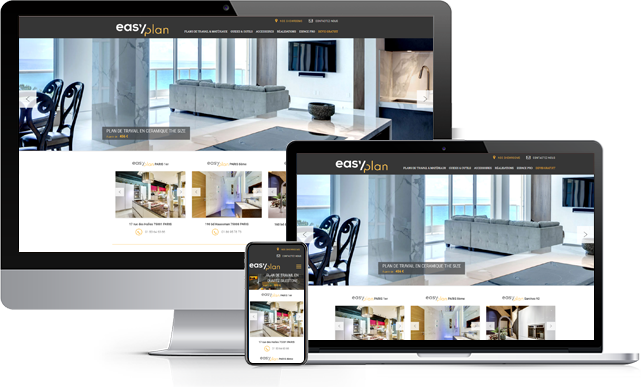 Site Catalogue avec un module de devis en ligne, catégories et sous-catégories des plans de travail & matériaux, Réalisation en images, Vidéos, Showroom avec localisation sur Google Map, Espace pro, Pop-Up, Référencement naturel, Google Adwords…